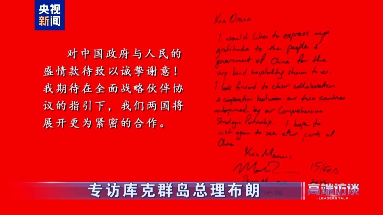 在刚刚结束的专访中,布朗总理滔滔不绝地与我们分享了近几天在上海、青岛、哈尔滨的经历,并赞叹中国式现代化取得的成就。他表示,两国长期以来相互尊重、平等相待,感谢中国对库克群岛发展的支持和帮助,期待未来与中国深化多领域互利合作。(央视)